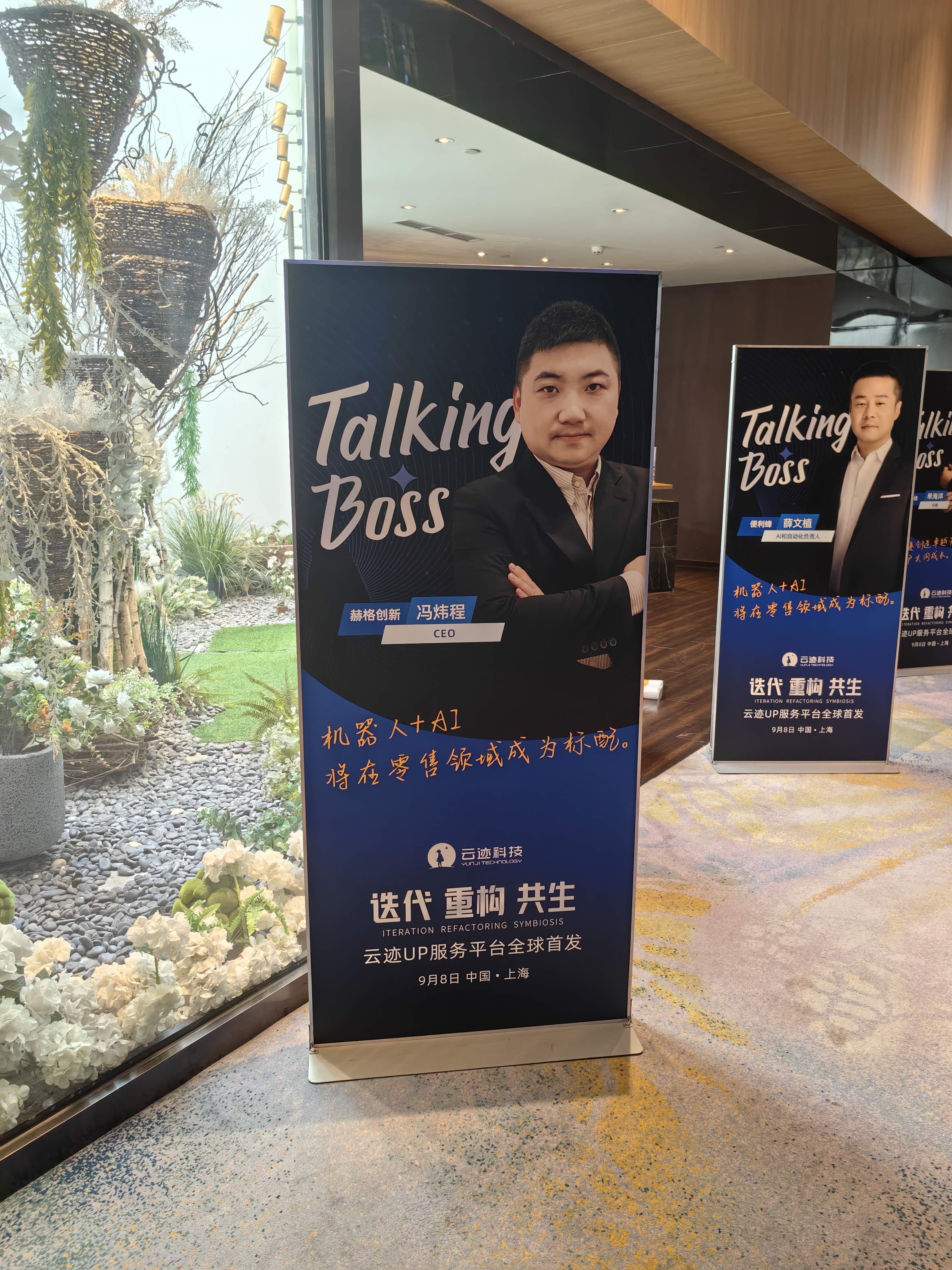 9月8日,中國商用機器人領先企業云跡科技成功舉辦“云跡UP服務平臺全球始發”活動,本次活動以“迭代、重構、共生”為主題,現場40多位企業創始人、50余位上海高星酒店總經理、100+酒店集團/品牌CEO、200+酒店行業大咖蒞臨,與行業同仁一起共同探討中國科技產業浪潮下,商用機器人行業的迭代和酒店數字化轉型的發展。
